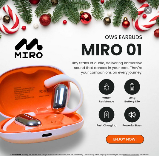 Foxx Miro OWS Bluetooth Earbuds, AC7003 Chip, Bluetooth 5.3, IPX4 Waterproof, 14.2mm Speaker, 400mAh Battery, 4H Play & Talk Time, USB Type-C Charging, 10m Wireless Range, 10g Lightweight, Fast Charging, A2DP, AVRCP, HSP, HFP Supported